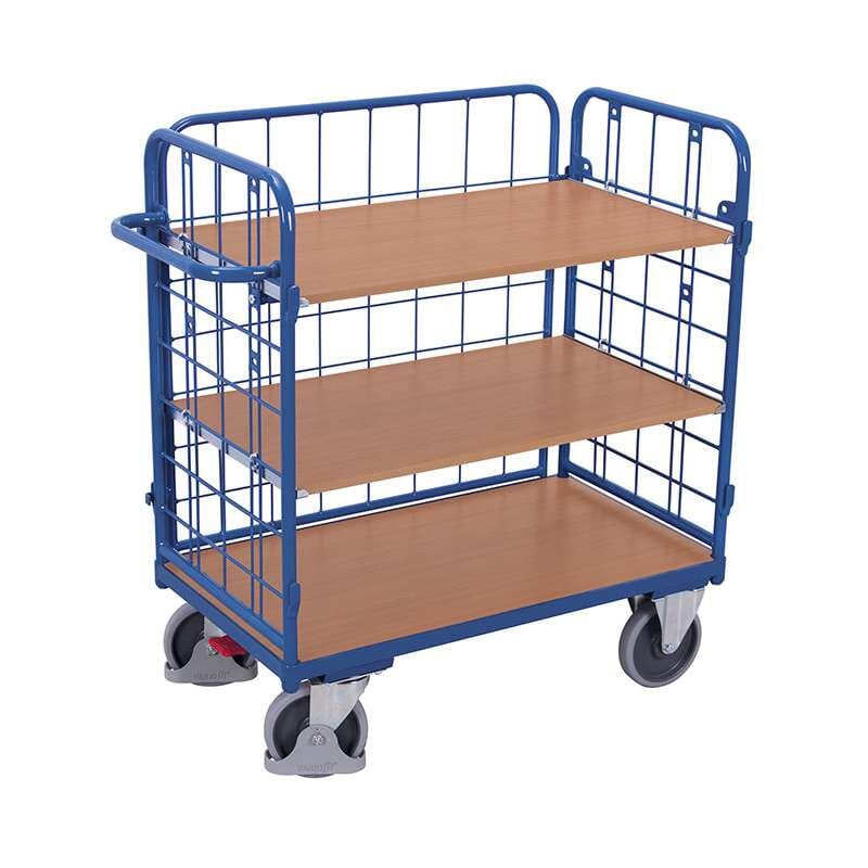 Chariot bas à 3 étagères plateaux et 3 ridelles - sw-500.307