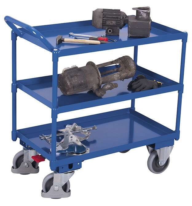 Chariot à 3 caissettesChariot à plateaux, charge maximum de 500 kg à 600 kg, roues en TPE (élastomères...à partir de 636,00 €Voir -