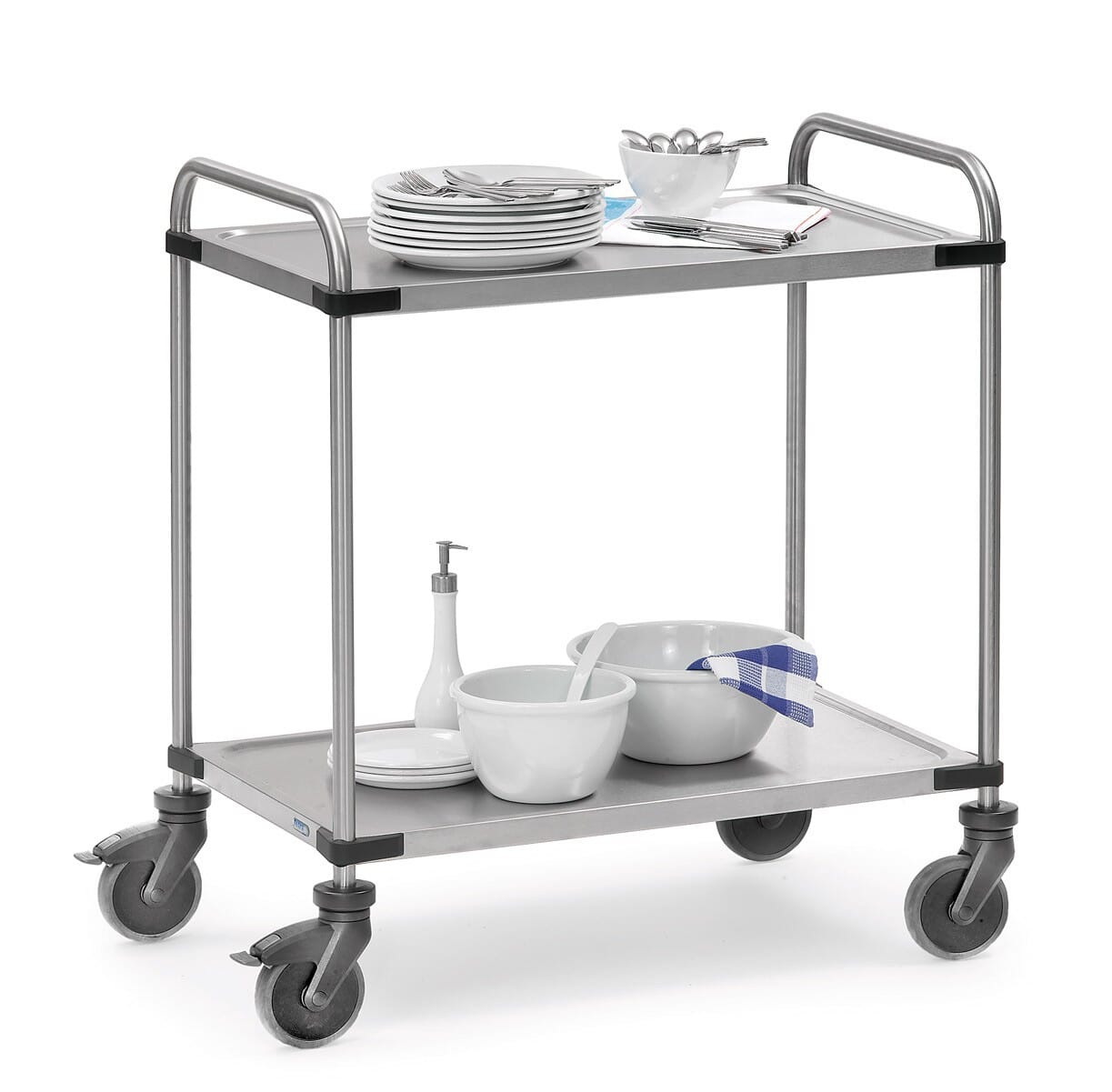 Chariot inox à 2 plateaux avec roues TPE, FETRA - 5001