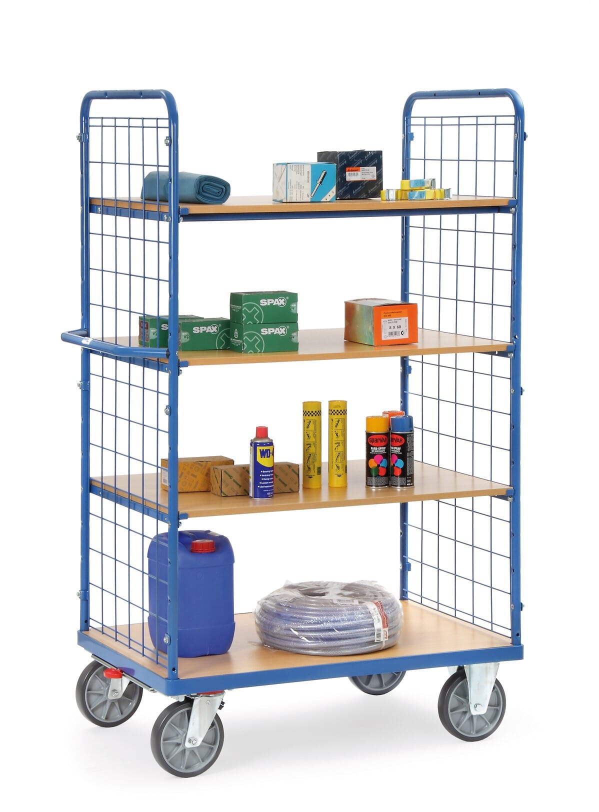Chariot haut à 4 plateaux avec 2 ridelles et 2 côtés