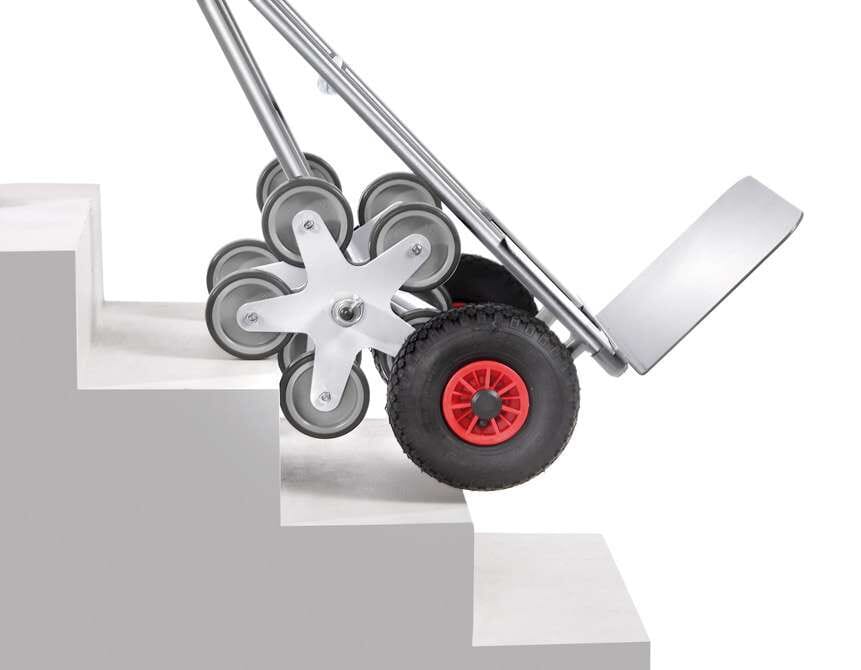 Diable escalier en aluminium avec 2 roues gonflables et 2 fois 5 roues en étoile et bavette large