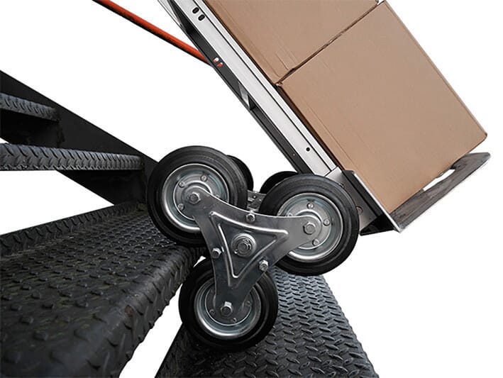 Le diable aluminium ST150-3W est conçu pour déplacer des charges dans des escaliers. Ses roues en caoutchouc sont montées sur jantes en acier. Ce diable monte-escalier de qualité premium dispose d’une capacité de 150 kg.