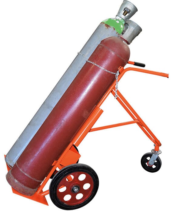 Diable Stockman conçu pour transporter 2 bouteilles de toute taille. Il est équipé de grandes roues à bandage caoutchouc.