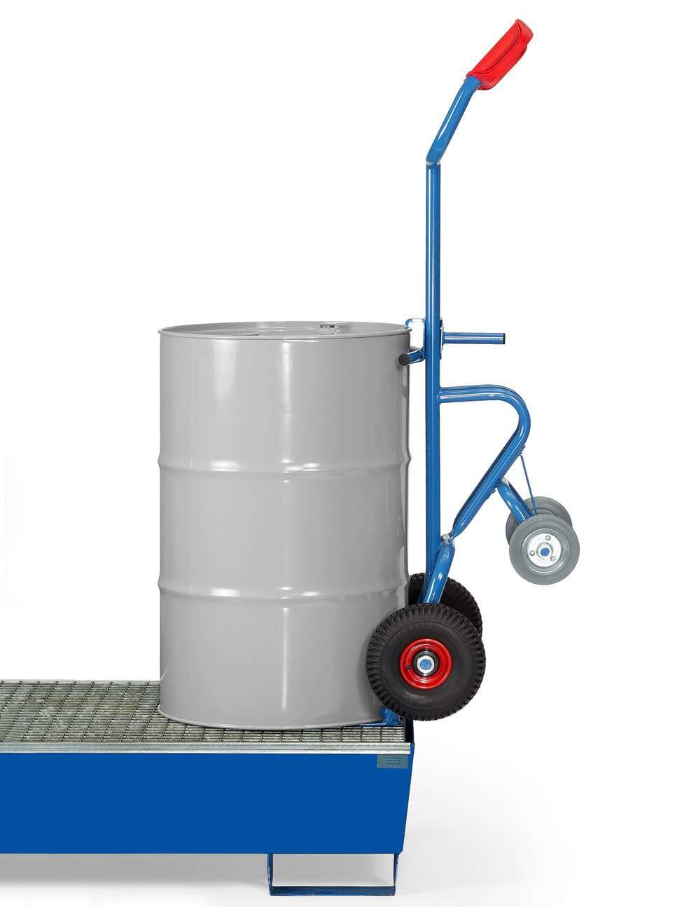 Diable compatible pour fûts acier de 200 litres avec rebord.