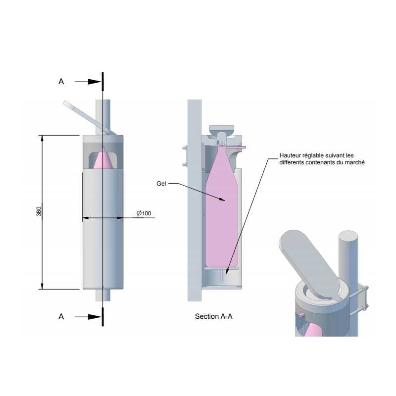Fiche technique Distributeur mural de gel hydroalcoolique pour bus et ascenseur