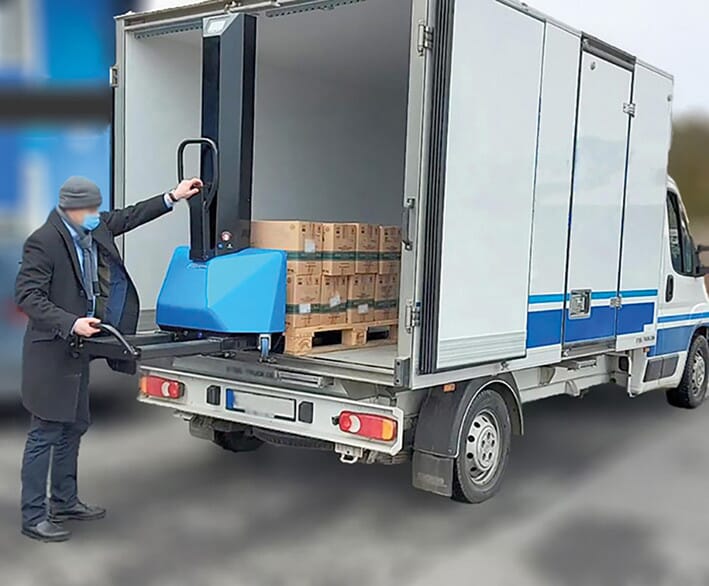 Le gerbeur embarqué autonome électrique VL est un équipement révolutionnaire dans le domaine de la manutention des marchandises. Il monte et descend seul dans les camions ou utilitaires légers pour la charge et décharge des palettes jusqu'à 550 kg.