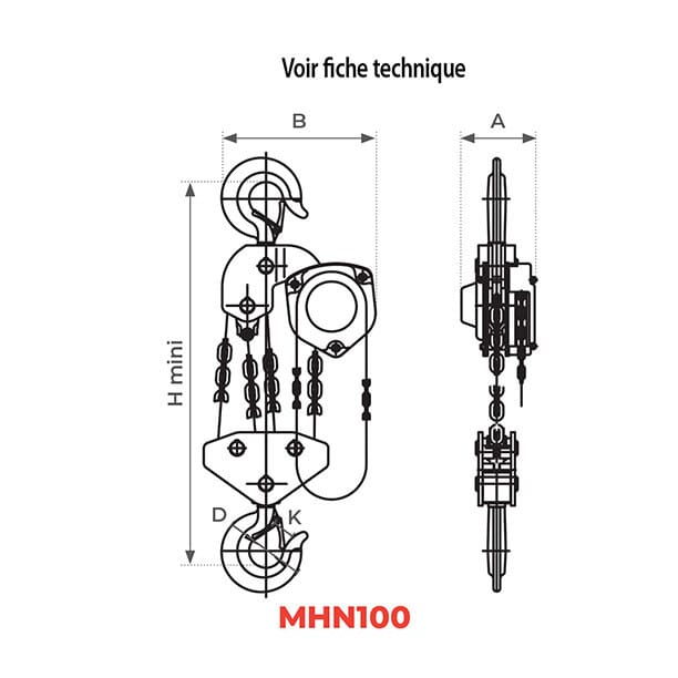 Caractéristiques techniques de ce palan à chaine manuel :