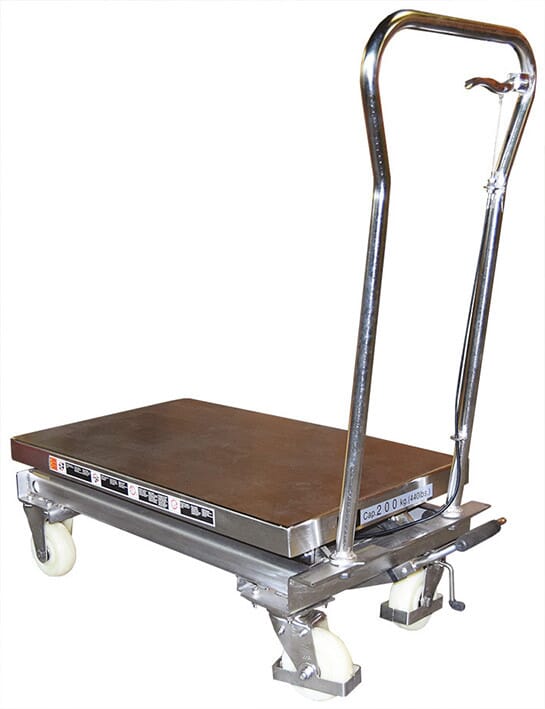 - Table élévatrice manuelle en inox 304 d'une capacité de 100 et 200 kg selon le modèle choisi
