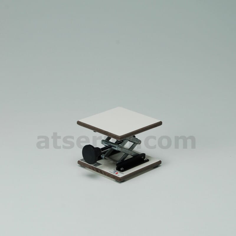 Support élévateur pour une charge maximale statique de 10 kg. Dimension plateau 100 x 100 mm. Hauteur de 40 à 115 mm. Idéal pour les laboratoires.